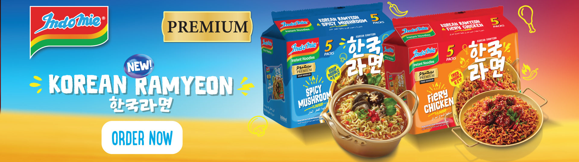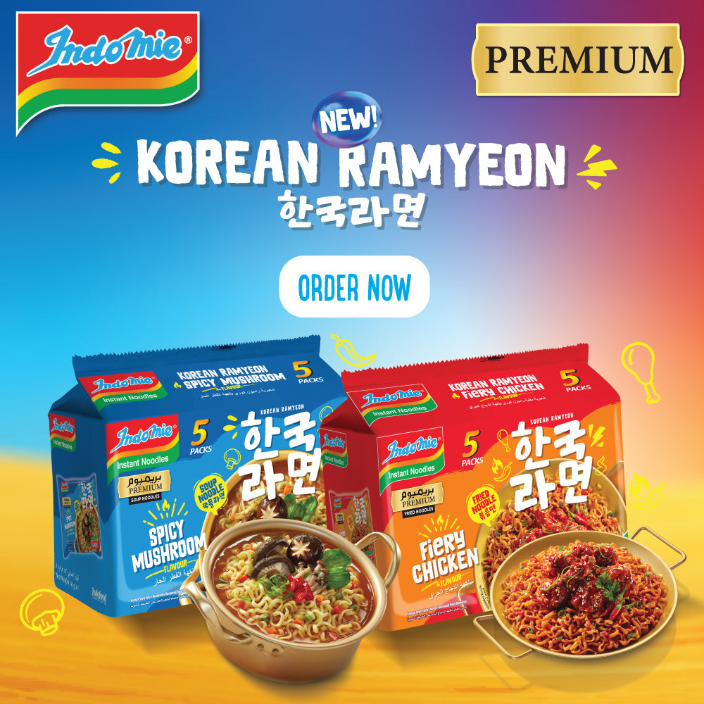 Indomie Korean Fiery Chicken Fried Noodles, Halal Certified - 5 Packs Each 94gm