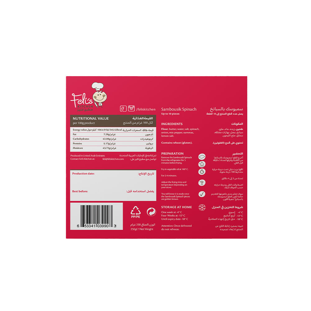 Feli's Kitchen Frozen Spinach Sambousik 250g