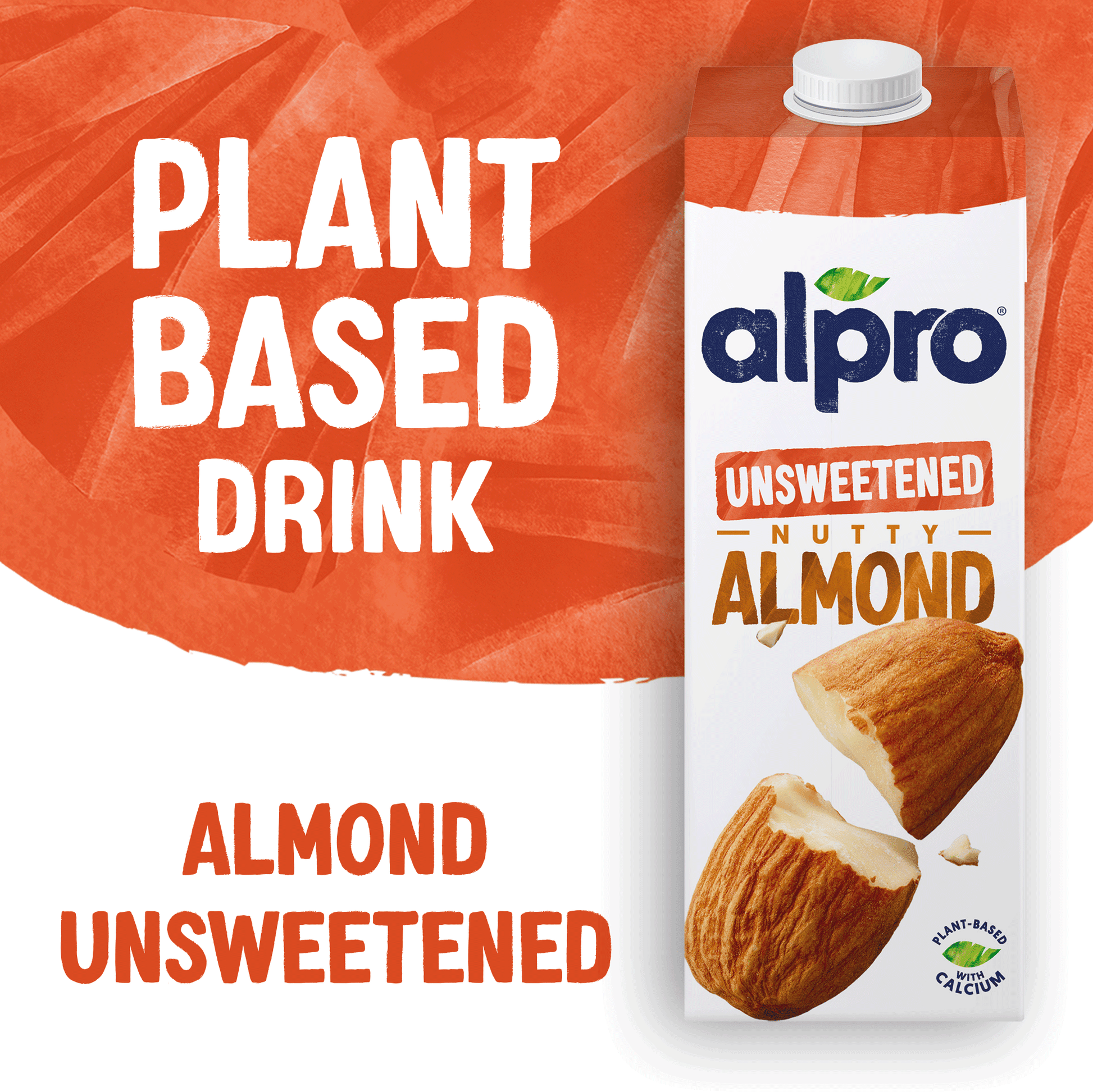 Alpro Almond Unsweetened Drink, Pack of 8 x 1L, 100% Plant Based And Dairy Free, Suitable For Vegans, Naturally Free From Lactose, Rich In Nutrients
