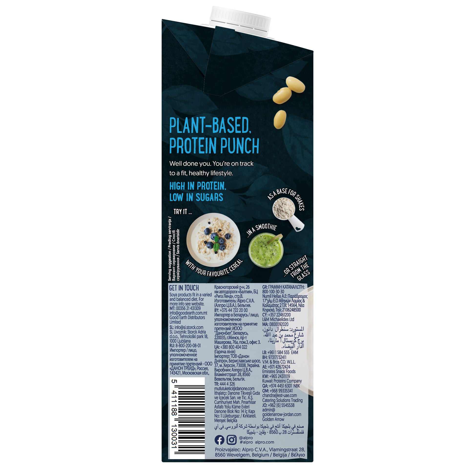 Great choice. Our Soya High Protein drink packs a real protein punch. And all of it from our responsibly farmed soya. Plus a healthy helping of calcium and vitamins, courtesy of yours truly here at Alpro. So going non-dairy most definitely does not mean going without. So go ahead. Enjoy the soya. Use it wherever you'd use milk. Because lovely as milk is, isn't it nice to have a choice? Splash it on your breakfast cereal, whizz up a shake, pour it on porridge, stir it into your coffee, top up your tea... Dairy free, it’s perfect for vegans, vegetarians and plant-based Passionists. And anyone else who just wants to pour a little extra plant-based deliciousness into their everyday. Because why should vegans have all the fun?