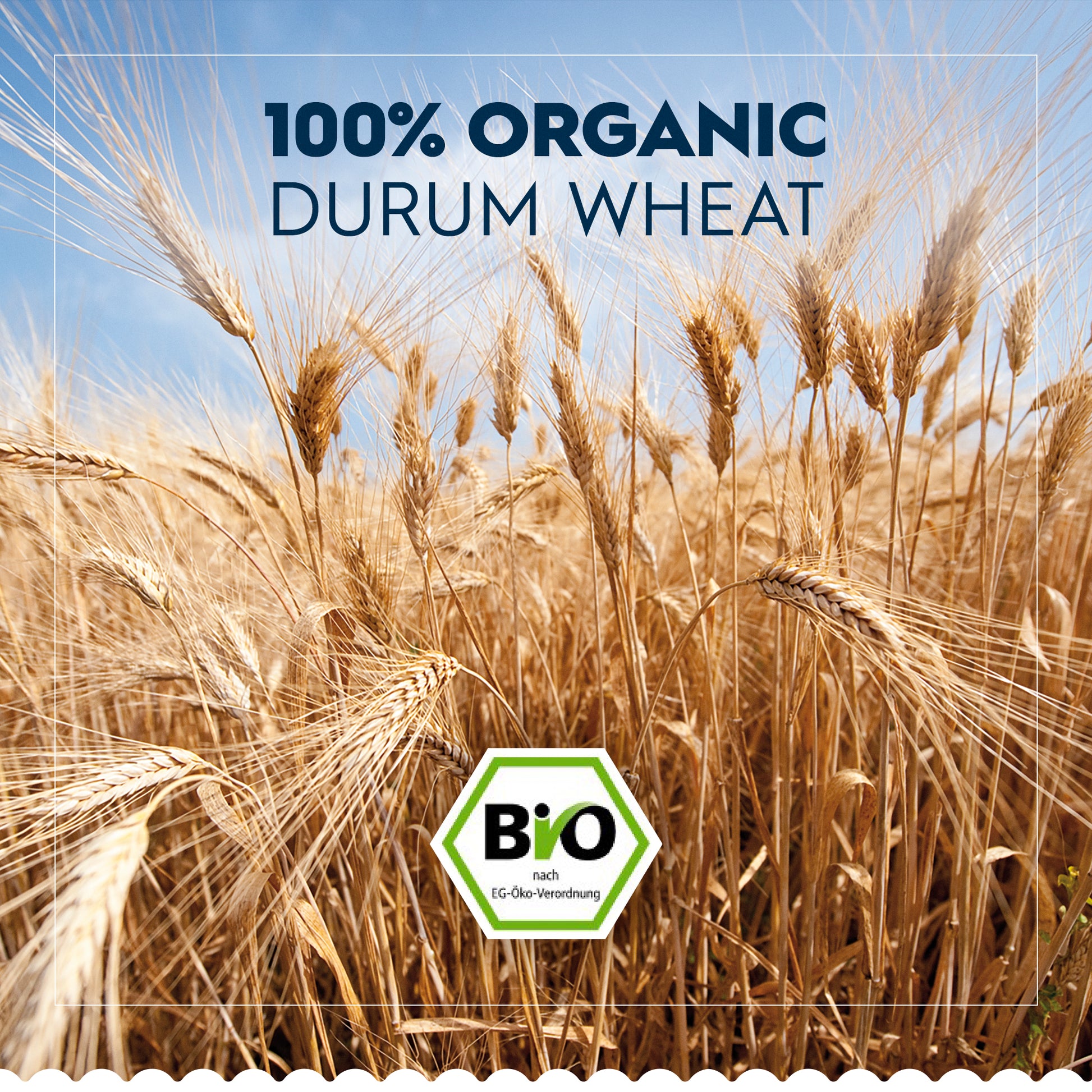- Pasta made from durum wheat from Organic Farming for perfect "al dente" cooking.