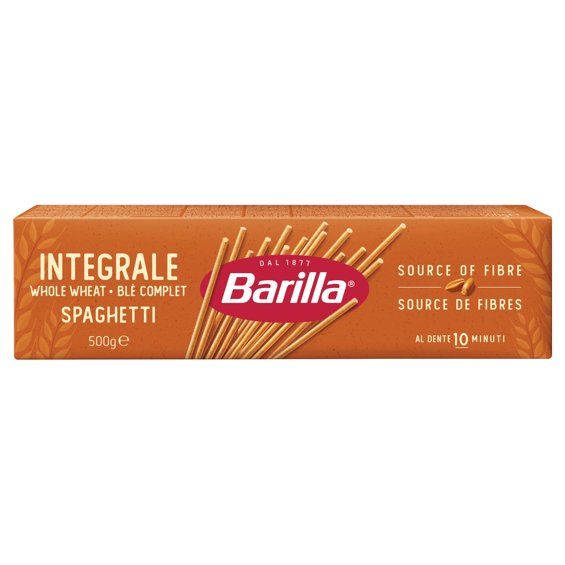 Barilla WHOLE WHEAT SPAGHETTI is made with 100% whole wheat, all natural and an excellent source of fiber. This pasta is ideal for anyone seeking to increase their intake of fiber and whole grains without sacrificing taste. Try them with easy tomato sauce, vegetables, with or without meat and enjoy an authentic Italian meal.