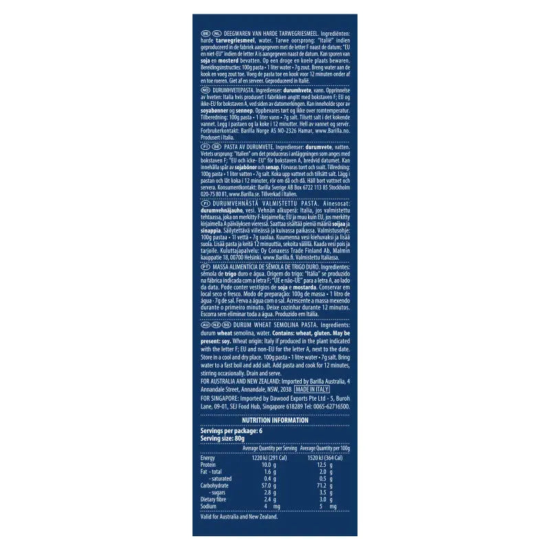 • FEATURE: Made with 100% HIGH QUALITY DURUM WHEAT Semolina. GMO free. CREATE DELICIOUS PASTA MEALS: Pairs well with just about any type of pasta sauce to make an authentic Italian meal for you and your family.