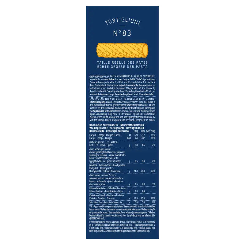 The Barilla TORTIGLIONI have an unmistakable elegance: all thanks to their shape, created to collect the condiment. Try tortiglioni with dense and full-bodied sauces, be they sumptuous meat ragu or refined sauces based on cream and mushrooms.