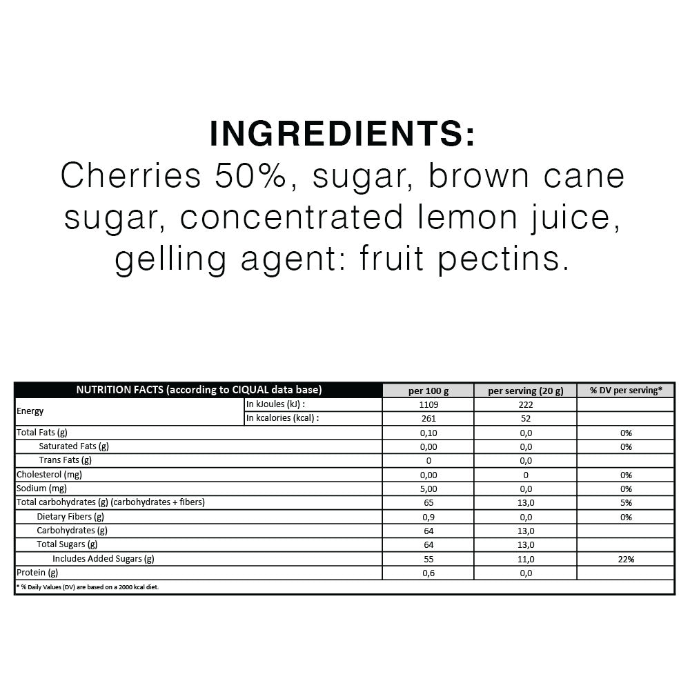 Fruits 50%● Sugar● Cane. Red Cherry● Concentrated● Juice● Citrus And Pectin.