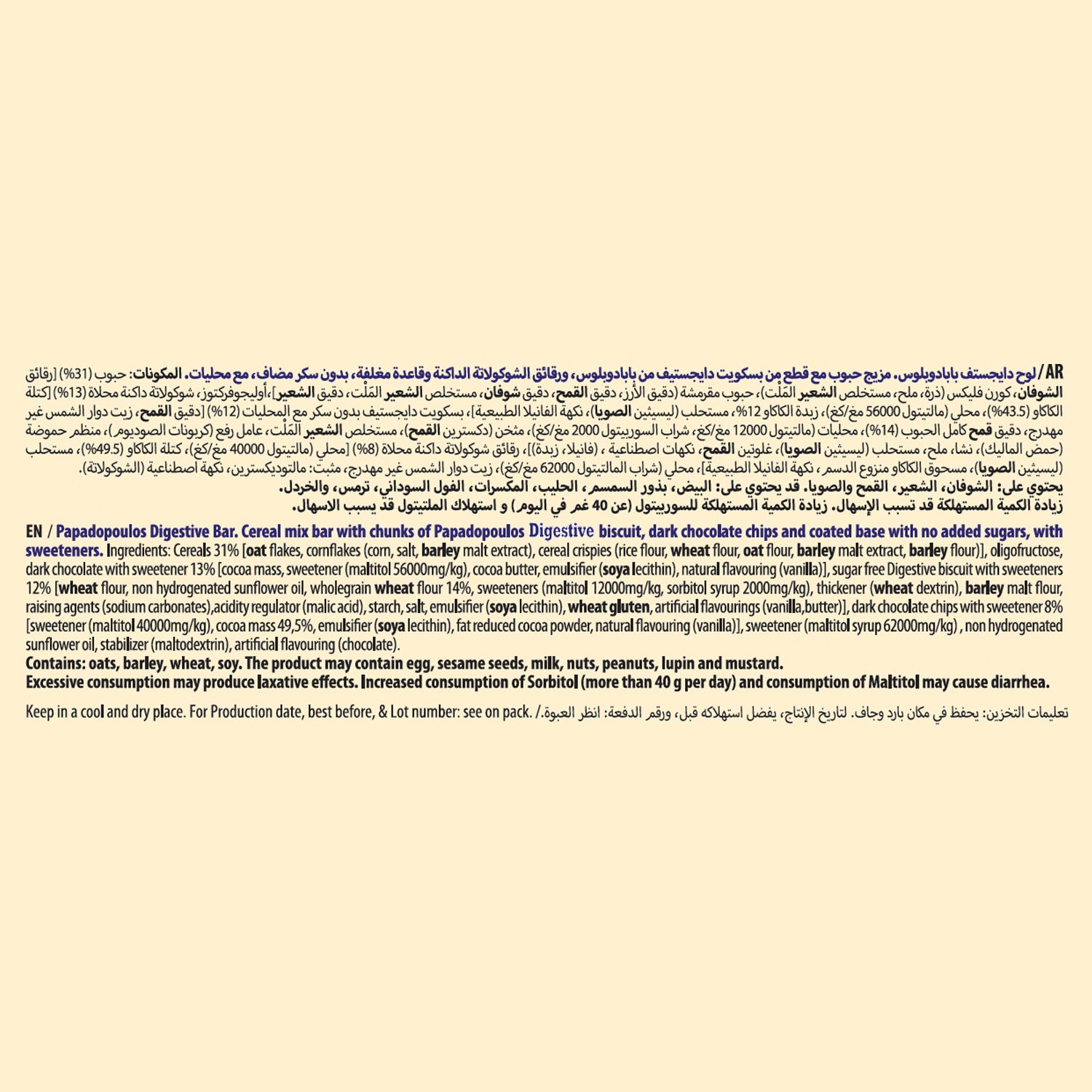 Enjoy a wholesome snack with Papadopoulos Digestive Bars, made with crunchy cereal mix and rich dark chocolate. These bars contain no added sugar while still delivering great taste and natural sweetness. Perfect for on-the-go snacking, lunchboxes, or a guilt-free treat anytime.