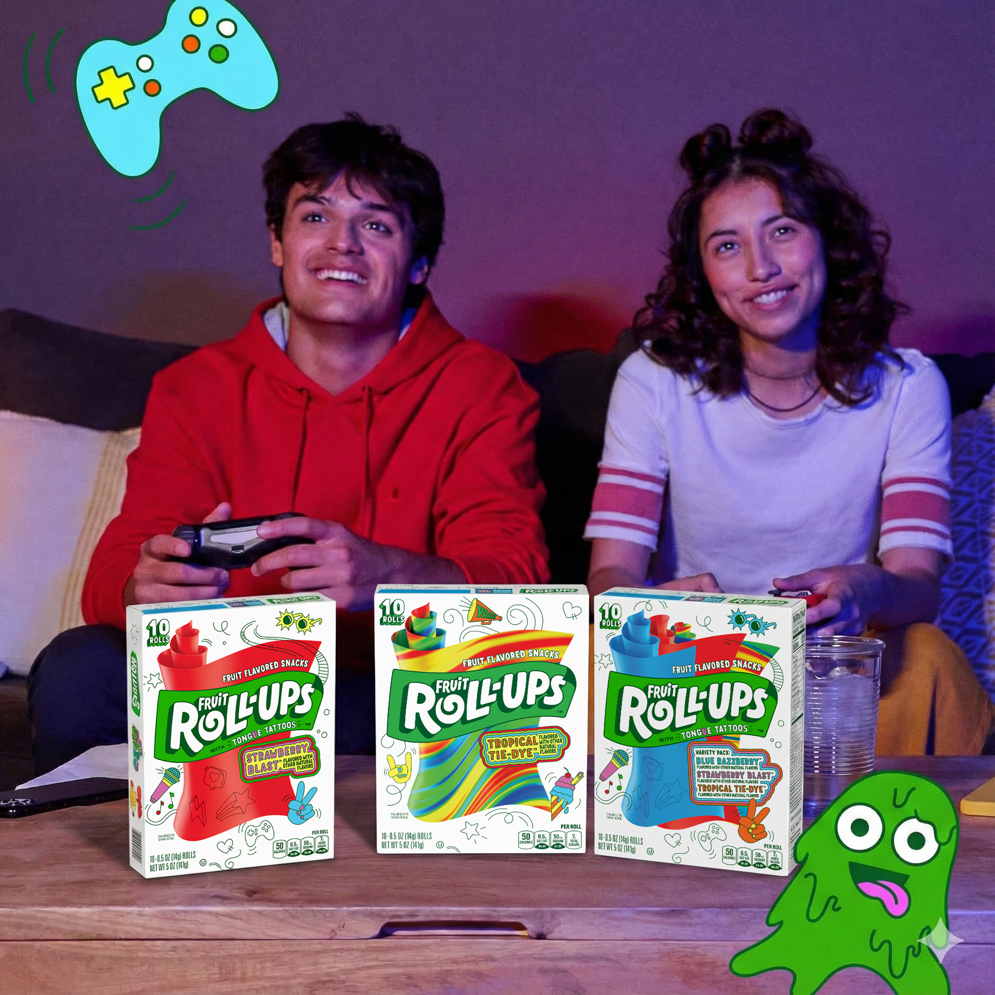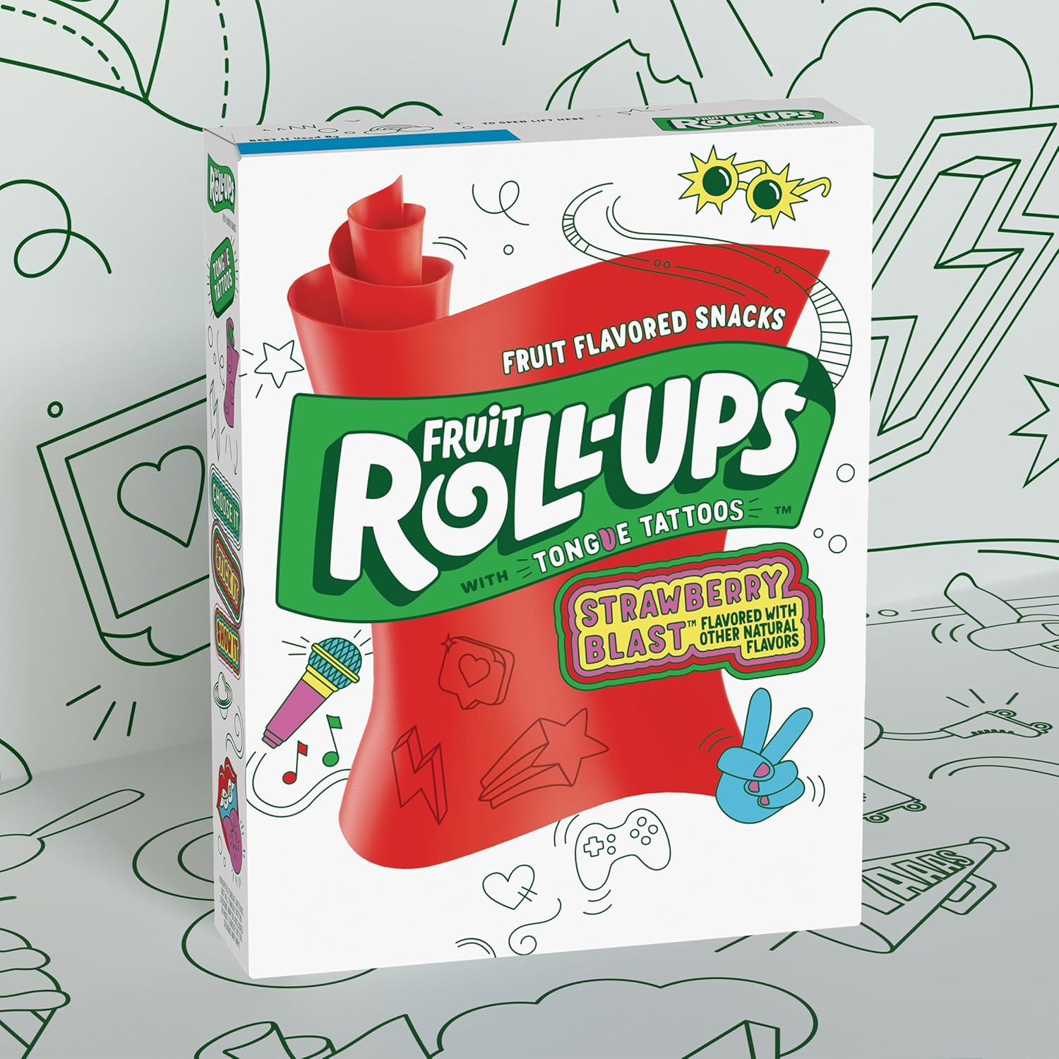 When you need a yummy snack for kids of all ages, choose the juicy goodness of Fruit Roll-Ups Strawberry Blast Fruit Flavored Snacks. Unwrap tasty fun with these delicious fruit flavored snacks. With wild flavors and colors, the possibilities for fun are endless. You've finally found the perfect after-school snack that's a win for you and your kids. Each roll comes with an assortment of tongue tattoos for wacky fun. Packaged for on the go convenience, Fruit Roll-Ups Fruit Flavored Snack pouches are the perfect addition to your pantry and grocery routine and a snack every member of the family will love. These treats are made without gluten and gelatin; each serving has a good source of vitamin C. Contains one cardboard box of chewy Fruit Roll-Ups Fruit Flavored Snacks, Strawberry Blast, 10 Ct, 5 oz.