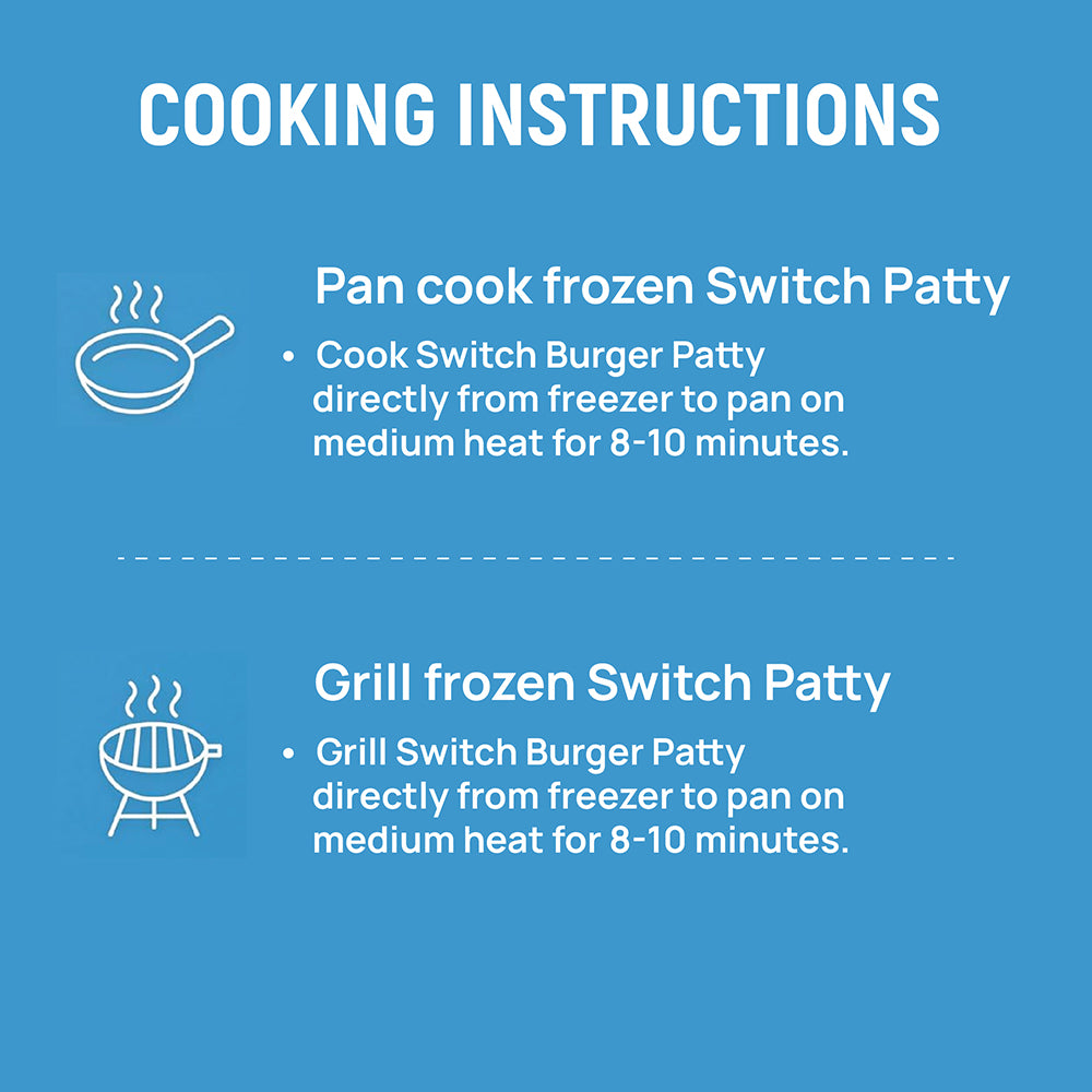 Switch 100% Vegan Burger Patties, 460g - Sink your teeth into a juicy plant-based burger patty and satisfy your cravings without sacrificing your health or tastebuds.