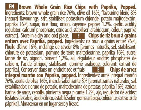 Rice Up Whole Grain Rice Chips Paprika 60G, Gluten free, No GMO