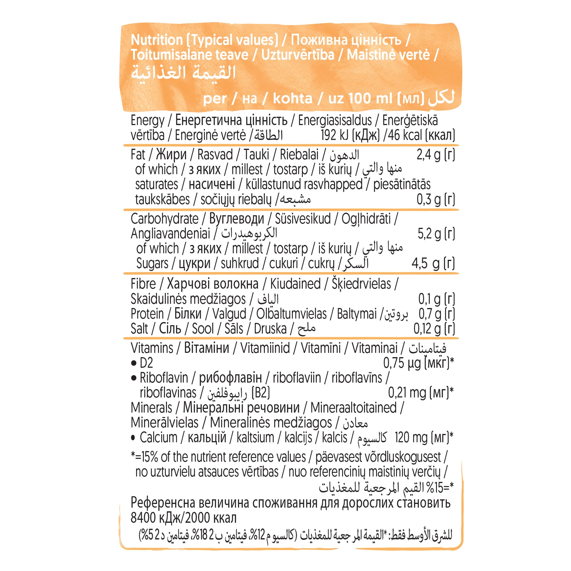 Oat ingredient (drinking water, oats, soy ingredient (drinking water, peeled soy beans)), sugar, sunflower oil, flavourings, calcium (calcium carbonate), acidity regulator (potassium phosphates), sea salt, flavourings, vitamins B2 and D2.