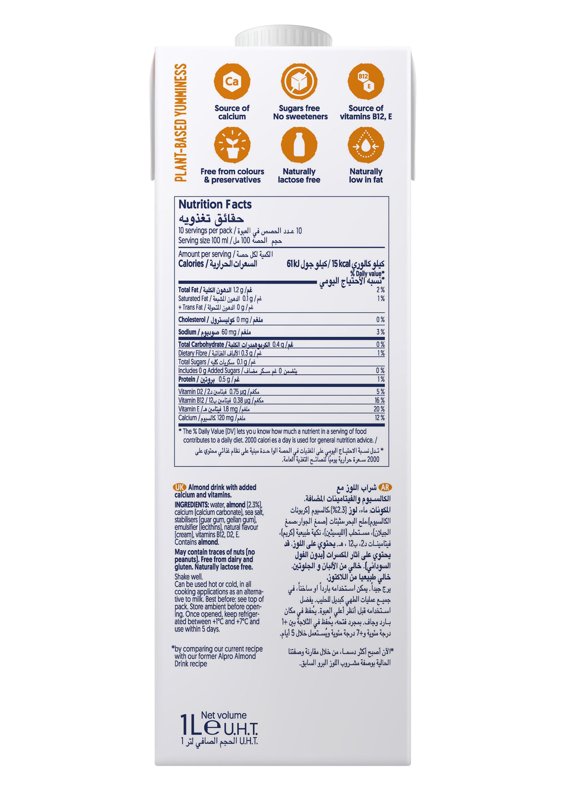 Alpro Drink Almond Unsweetened Dual Pack (1l x 2), 100% Plant Based And Dairy Free, Suitable For Vegans, Naturally Free From Lactose, Rich In Nutrients