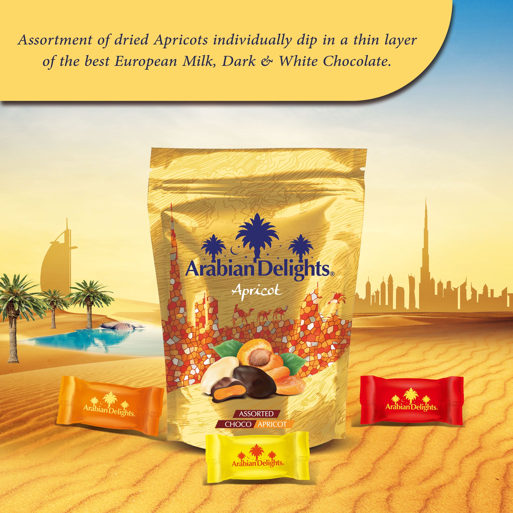 Arabian Delights Chocolate Apricots ,Assorted Pack, Coated Bite-Sized Snacks| Snacks & Sweets- 230 gm.
