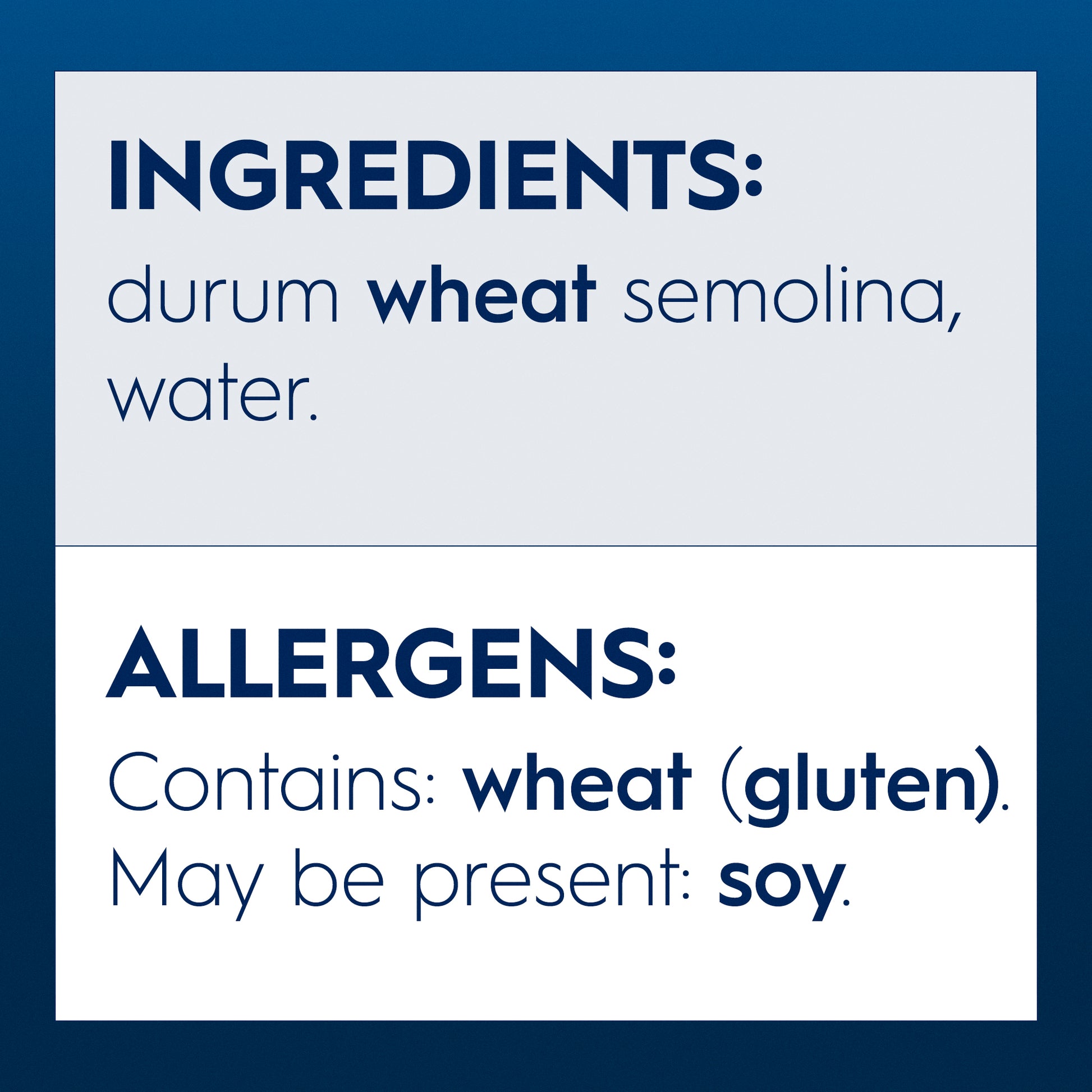 Durum Wheat Semolina, Water. May be present: Soy