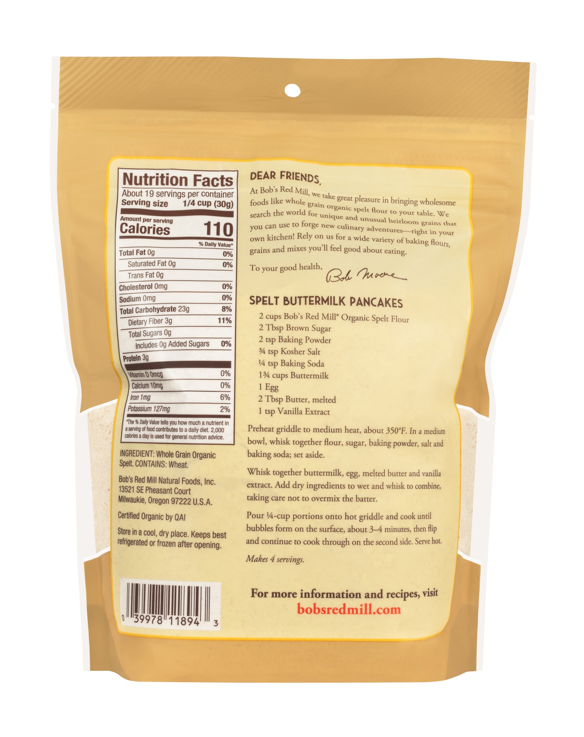 Bob's Red Mill Organic Whole Grain Spelt Flour, Non-GMO 567gm