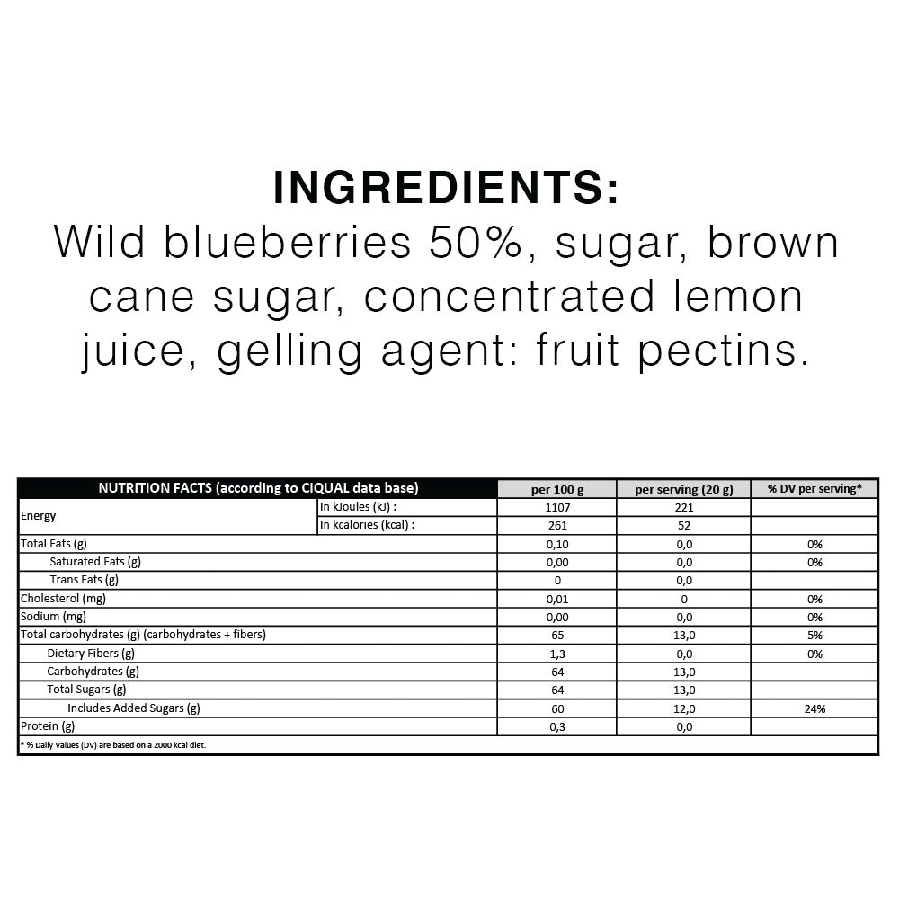 Wild Blueberries 50%● Sugar● Cane Sugar Citrus Pectin