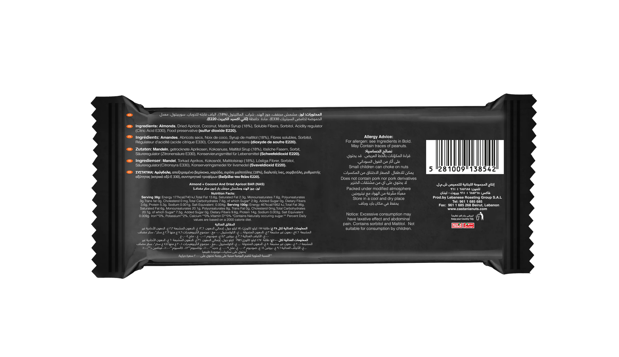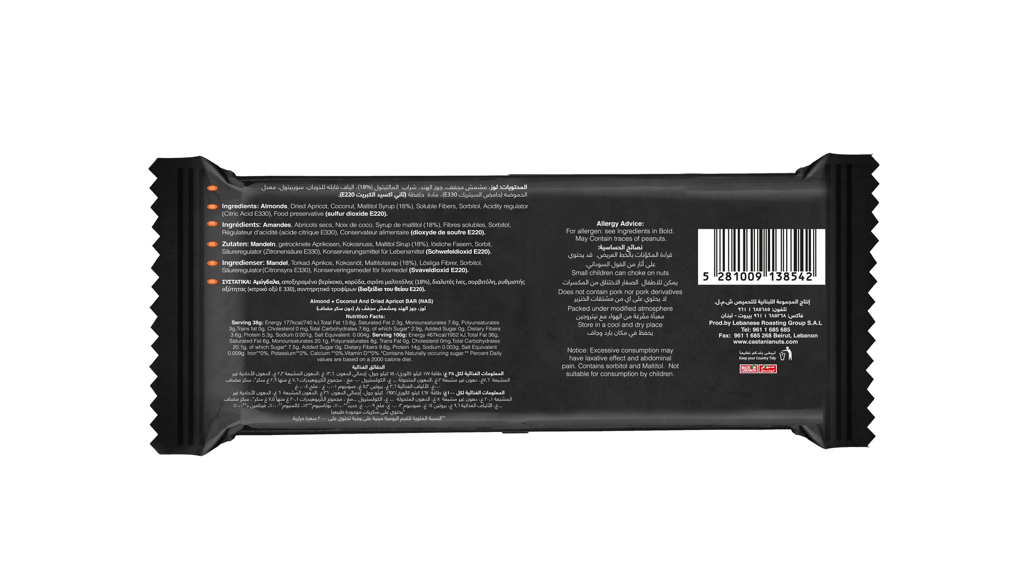 - No Added Sugar Castania snack bar with delicious and nutritious nuts and fruits.
