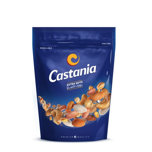 Castania mixed nuts Extra is a Lebanese brand 250G contains salted almonds, cashews, pistachios, hazelnuts, peanuts, coated peanuts, corn, pumpkin seeds and chick peas. A rich source of protein, fiber and other beneficial nutrients. Castania is the leader in the Lebanese nuts market.