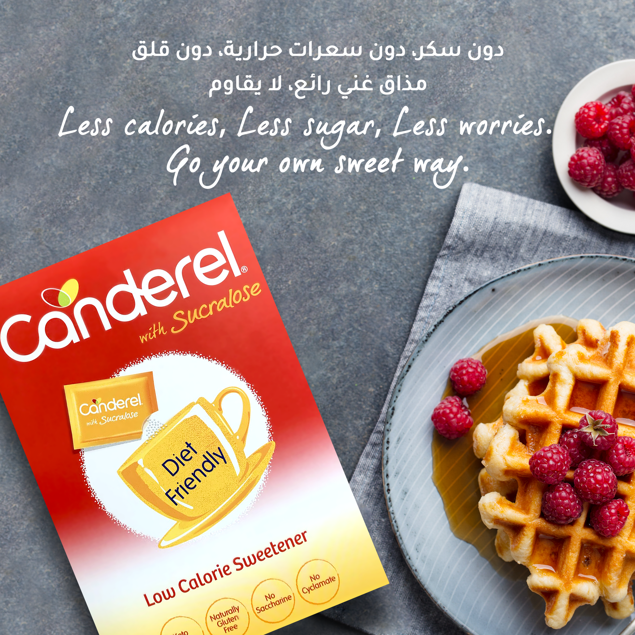 Canderel sachets are delicious, easily dissolvable sucralose sweeteners, perfect for your daily coffee or tea. At Canderel we believe in balanced diets and healthy choices, including enjoying what we like and feeling good about ourselves. Get that sweet taste you love without having to compromise.