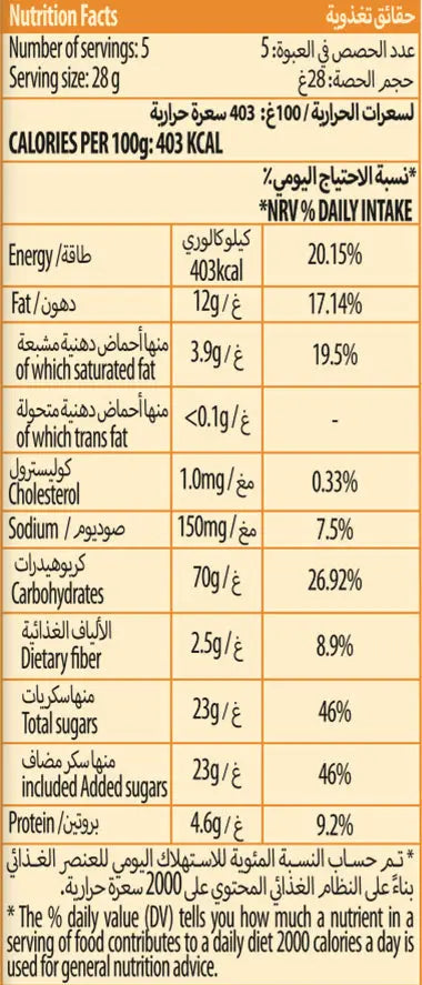 Savor the taste of Digestive biscuits and dark chocolate perfectly balanced by the benefits of cereals and orange.