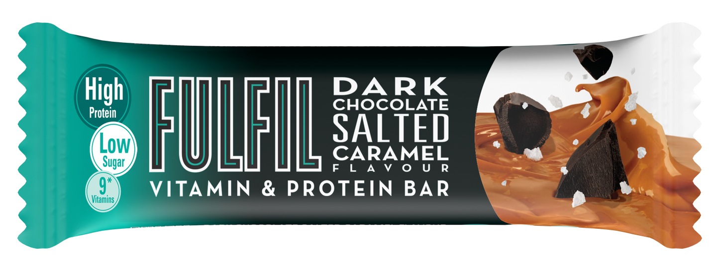 Fulfil Dark Chocolate Salted Caramel Flavour - Vitamin & Protein Bar, Low Sugar, High Protein, 150 Calories With 9 Vitamins, 55gm