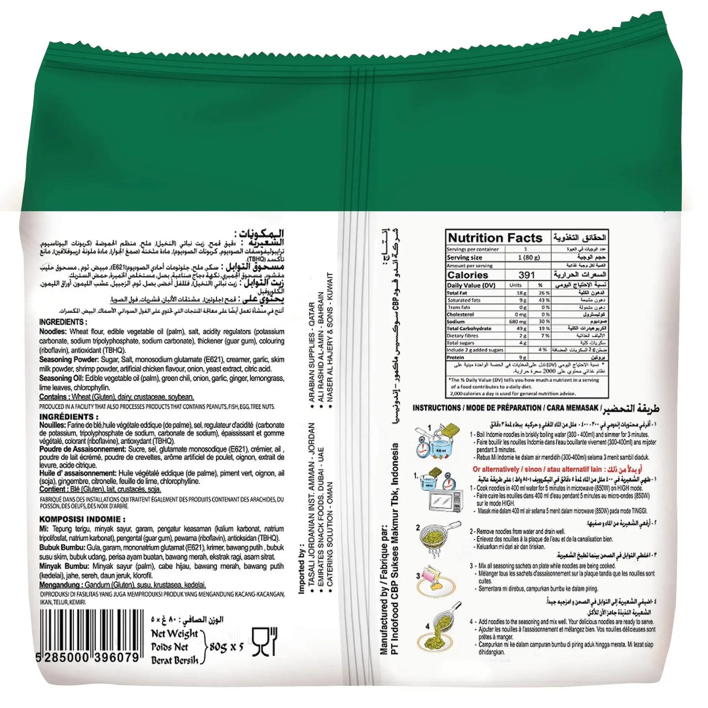 Indomie Instant Fried Noodles, Green Chilli Flavour (Pack of 5 - 80 g Each)