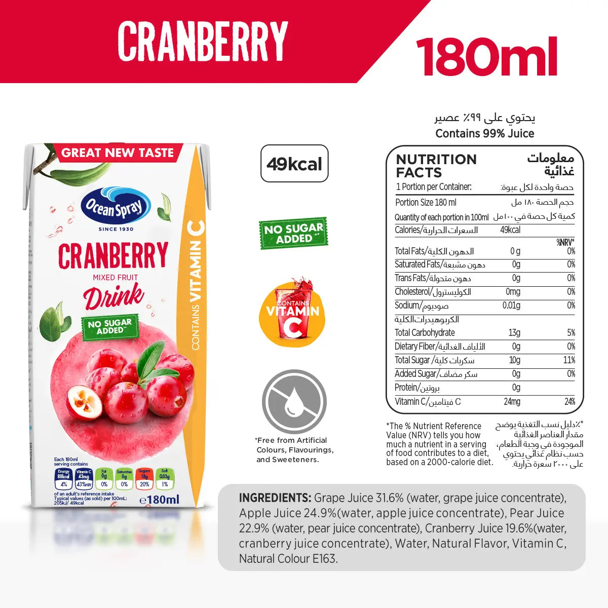 Ocean Spray Cranberry Classic No Sugar Juice Drink 180ml