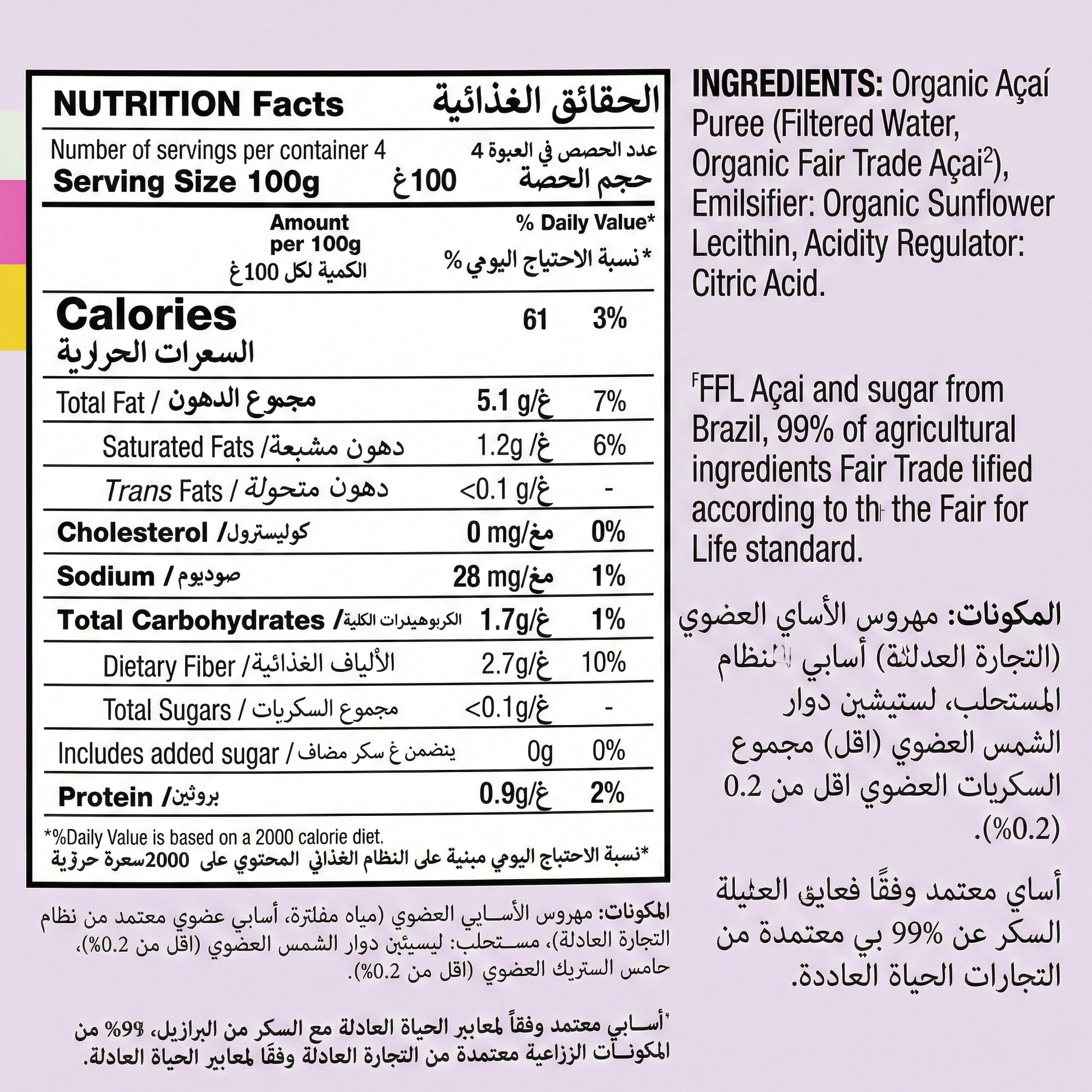 - Pure organic Fair Trade Açaí Puree, great for customizing your own delicious Açaí bowls or smoothies at home.