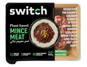 Switch 100% Vegan Mince Meat, 500g- Go ahead, add a little "meat" to your veggies! Indulge in all your favorite traditional dishes, supercharged by the power of pea protein.